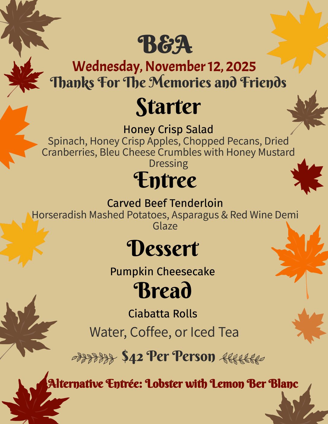 I’d like to share that Chef Geronimo will be moving on from Blue Skies to pursue another opportunity.  We are thankful for the creativity and flavors he brought to our dining room; we know many of you enjoyed his cooking.  Beginning Monday, Chef Bree Dawson will join us to lead our dining program.  Bree is highly recommended by Morrison and will bring experience and energy.  She will be working closely with our team to ensure a smooth transition as we prepare for the start of our new partnership with Restaura on 1 November.